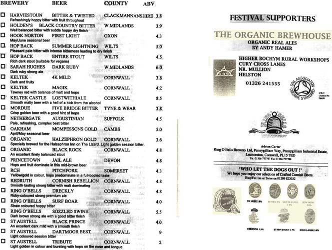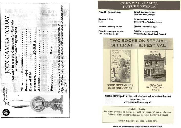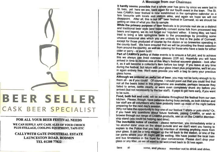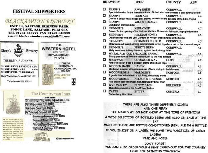 St. Ives CAMRA Cornwall Beer Festival 2003 Programme 1 St. Ives CAMRA Cornwall Beer Festival 2003 Programme 2 St. Ives CAMRA Cornwall Beer Festival 2003 Programme 3 St. Ives CAMRA Cornwall Beer Festival 2003 Programme 4