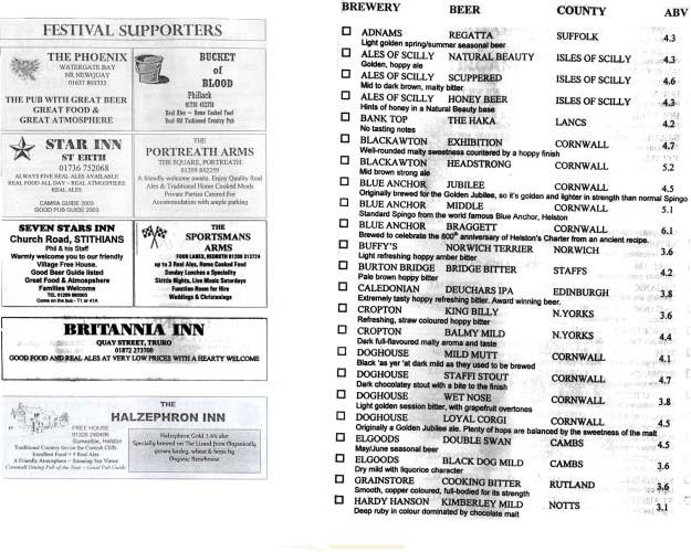 St. Ives CAMRA Cornwall Beer Festival 2003 Programme 5 St. Ives CAMRA Cornwall Beer Festival 2003 Programme 6 St. Ives CAMRA Cornwall Beer Festival 2003 Programme 7 St. Ives CAMRA Cornwall Beer Festival 2003 Programme 8