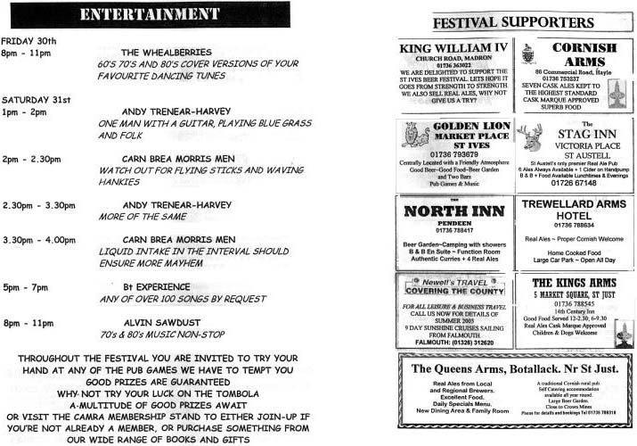St. Ives CAMRA Cornwall Beer Festival 2003 Programme 9 St. Ives CAMRA Cornwall Beer Festival 2003 Programme 10 St. Ives CAMRA Cornwall Beer Festival 2003 Programme 11
