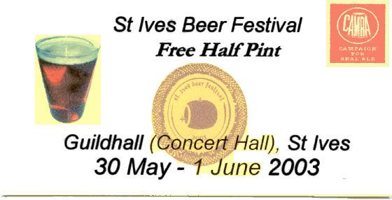..... as did an anonymous friend from the NCI (Coastwatch) who were the sponsored charity this year! St. Ives CAMRA Cornwall Beer Festival 2003 Token 2