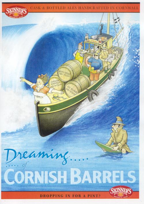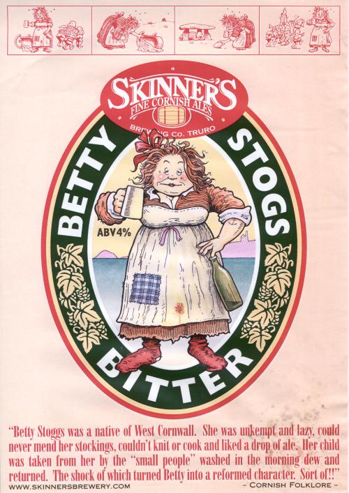 Hang on, you forgot to remind me about the bleurk from Sheffield, didn't you? Well, it sort of went like this ..... When we arrived at the Beerfest at the rather tardy time of 11.05am we discovered that a number of hardened (or should that be pickled?) aficionados had already staked out the tables. Sensing the ever-diminishing cat-swinging space we quickly grabbed a spot on the nearest table, which happened to be inhabited by a bloke from Wolverhampton and a bleurk from Sheffield. The bloke from Wolverhampton seemed fairly normal in so far as anyone from the Black Country could be said to fit that description!) but the bleurk from Sheffield definitely seemed a bit odd, even for a Tyke. I came to the conclusion that me must be one of those (un?)fortunate types who have been 'touched by the angels'. Actually, as it turned out, he'd just been drinking all the way down on his 8 hour train journey! Meanwhile, casual observation had revealed that there were a number of rather spiffy posters advertising various beverages from Skinner's Brewery in Truro. Their beers' names are based on characters from Cornish folklore and were very well illustrated. "Ooh, they'll look good on the website," thought I and went off to negotiate for some. I couldn't find the Skinner's rep but did manage to cadge a couple of an accommodating CAMRA bod. Unfortunately, there seemed to be no chance of getting what I thought was the best one, the Figgy's Brew poster. So, several hours later with hope (and my hand/eye co-ordination) failing I decided that skullduggery was the only solution. I whipped the poster off the wall hoping that I hadn't been spotted but no such luck. A few minutes later a CAMRA Obergruppenfuhrer swooped on me and a brief (but civilised) conversation ensued:- "Excuse me, sir, but could we have the poster back. You're welcome to take things at the end of the festival but they are supplied as freebies to advertise the brewery and so we'd like it back for the time-being." "But I can't be here at the end of the festival because I've got to work the rest of the weekend. Anyway, it's for my website [does the Bambi eyes] and that does advertise the beer festival and it's there all year round, so is 48 hours of existence here really that important?" At that point, having made my point, I was reluctantly preparing myself to hand the poster back if the CAMRA bod still insisted. He seemed to be thinking about it when ..... ..... in waded the bleurk from Sheffield with some rant about something or other that wasn't remotely connected to the poster theft. It was impossible to make out much of what was contained within that drunken diatribe of drivel except that, from the CAMRA bod's protestations, it didn't seem to be anything to do with the festival or its organisers. I couldn't get a word in edgeways. Eventually the CAMRA bod managed to break free and with a terse "I really must go" beat a hasty retreat at a speed Michael Schumacher could only dream about! So, I got to keep the poster. Not long after I slung the Reporting Team over my shoulder and headed off home. As I departed the bleurk from Sheffield was pouring some of his drinks into plastic bottles in preparation for his train journey back to Sheffield ..... where he was going to meet up with a mate and go to another beer festival! So, we might as well end with the (partially) ill-gotten gains.