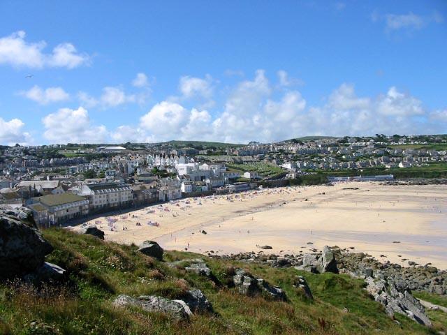 broadband access), here's a big panorama piccy of Porthmeor. [Don't panic