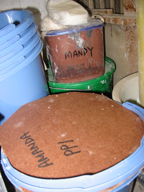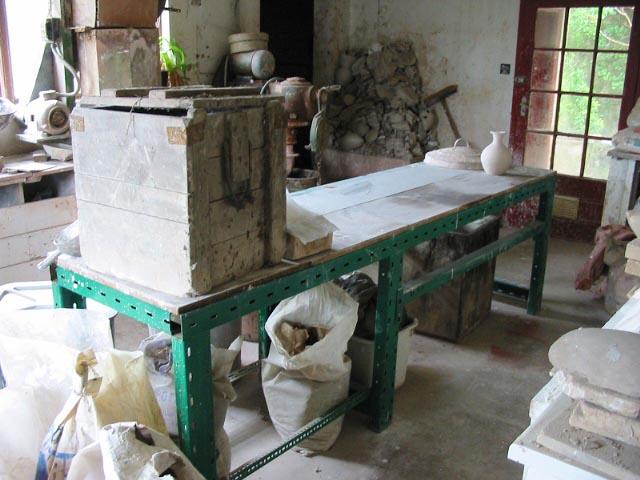 The seat of power, Trevor's authentic Leach kick-wheel on which he has