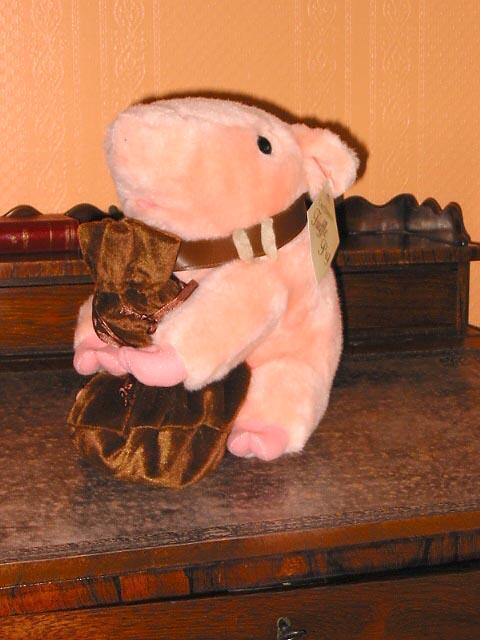 A Useful Thing? Lordy, it's hard to write all this stuff and keep it in working order. I don't know if anyone out there in the real world is finding it hard to find out what's new or changed amid all this mass of meandering mental musings but just in case you are I have slightly amended the home page to (hopefully) let you use a useful little thingy (which I use to keep track of updates on my fav websites). The theory is that if you use the little prog on the home page and it will then bung you an e-mail when the site gets updated (assuming I remember to update the 'last updated' column!). The e-mail will contain a link to take you straight to the Spooky St. Ives home page and then you should just need to scoot down the 'last updated' column to see what's got the most recent date against it. Just type your e-mail address in the box provided and press the 'OK' button. You will then be taken to a pop-up screen which will ask you to enter the URL address of the page you want to monitor. It's http://www.spooky1.com/ if you want to type it in manually or you can just copy and paste it in, either from here or the address bar in your browser (the big long box under the File/Edit/etc menus and tool bar icons if your using Internet Explorer). It will then take you to a page which will ask you if you want to subscribe to various e-mail blurbs but you can just hit the skip button if you're not interested. And th-th-th-that's all folks! Well, that's the theory anyway! 1 November 2002 Going The Whole Hog The mysterious benefactors have struck again. Having previously (and anonymously) despatched choccies and champagne to Vile Jelly at HMP Sloop, they have this time sent a pig (see below). The Reporting Team are particularly keen to get introduced as the pig appears to have in his possession a bag full of conkers!