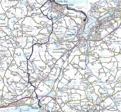 will note that the difference is from Ludgvan where it leaves the road, goes