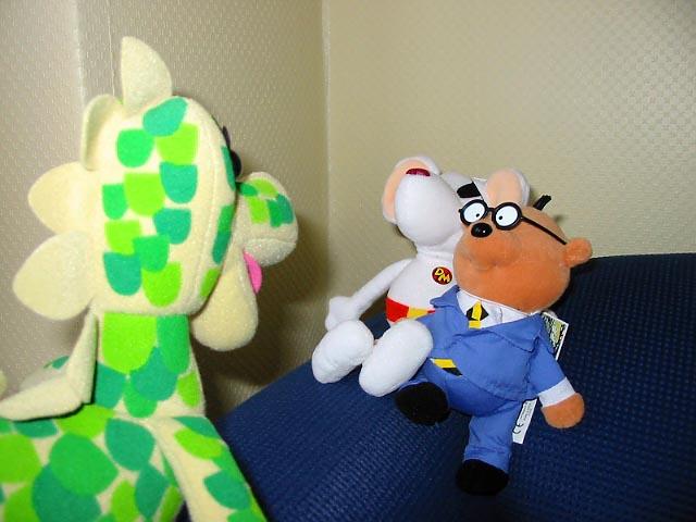 8 November 2002 Sick In Transit Gloria Mundi Apologies for the lateness of this week's bulletin. Unfortunately, a particularly unpleasant gut bug has laid Vile Jelly to the bone. The computer not being in the bathroom, where he has been spending most of his time, the news this week will be especially brief and pointless. Where Angels Fear To Tread ... Following on from the reported sighting of the St. Ives panther in last week's bulletin (see Having A Beastly Time In St. Ives) the Reporting Team have found a couple of 'volunteers' to go out and try to locate the beast. As luck would have it, a birthday pressie from my nephew and niece provided the team with exactly the sought of superhero and faithful sidekick you need for this sort of thing.