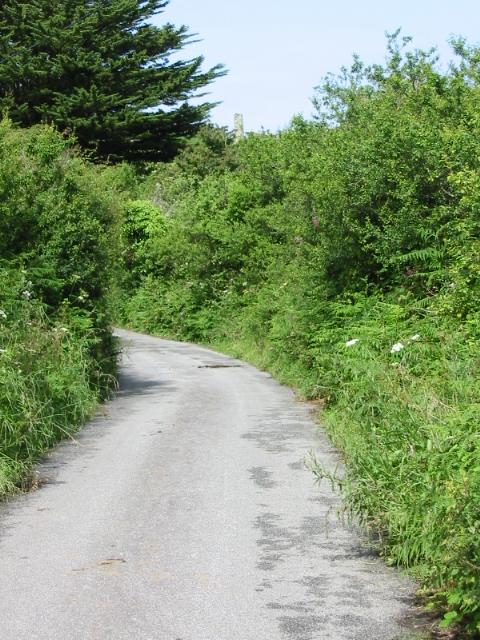 Right. We went left. So, if you are going to go the other way around (i.e. along the St. Just road) then this will probably make more sense if you go the end page of the Rosewall Hill section and read backwards. However, for all those who are following in the Reporting Team's pawprints, you should now be trolling along a narrow country lane. Fairly soon, on your left should appear the entrance to Bussow reservoir. This where some local anglers go to fight 'mano a fisho' with the reservoir's inhabitants. Now, pay attention here because eventually you will come to a couple of spots on the right where there are tracks you can follow to get to the top of Rosewall Hill (4 on map) . The trouble is these spots are not particularly easy to spot! Long trousers may be advisable if you are attempting the summit via this route (or want to explore the area off the beaten track). You can do it in shorts but if, like your intrepid/decrepit reporter you suffer prolonged exposure to prickly plants ... |